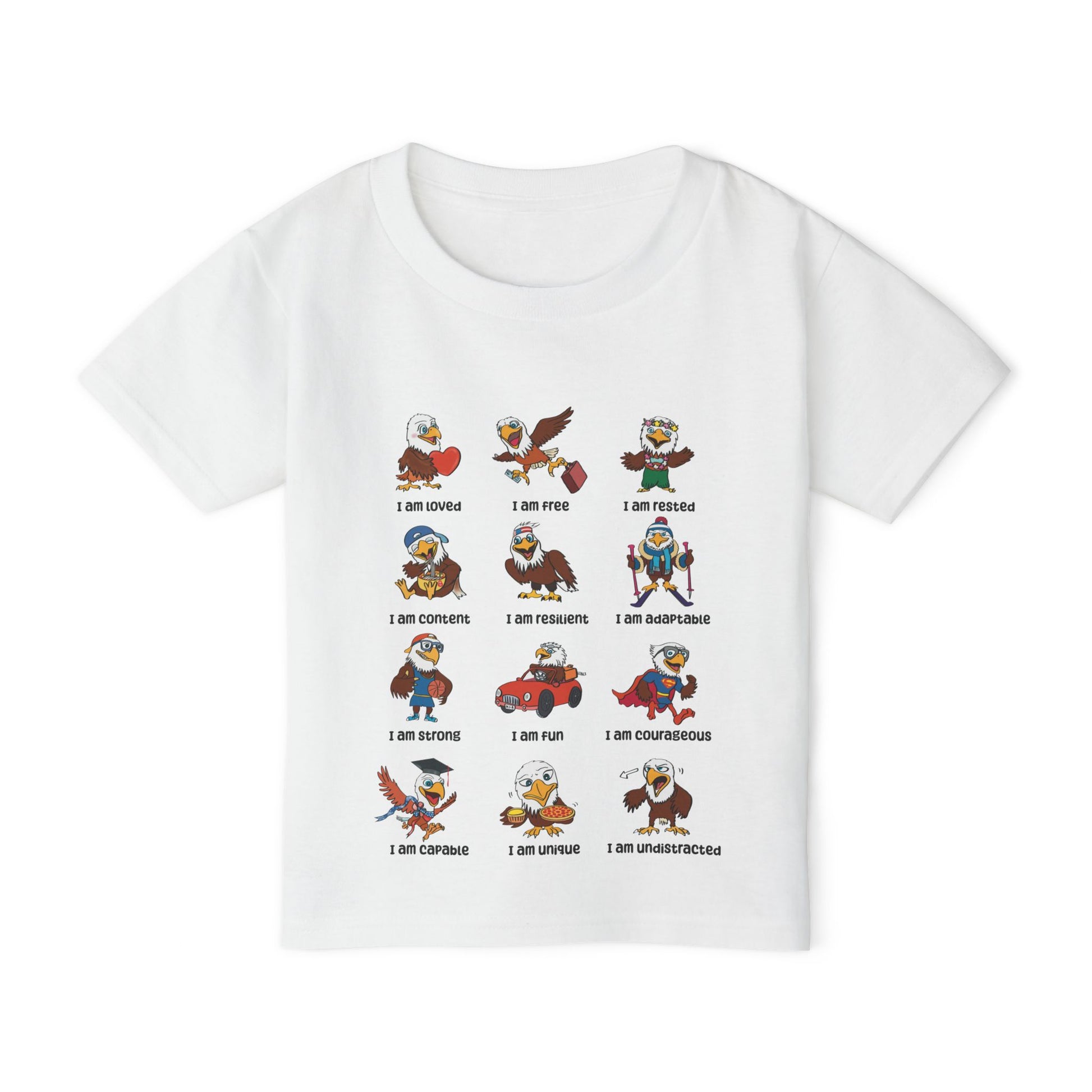 Inspired by the book Becoming An Eagle by Flora and Isaiah 40:31, this eagle T-shirt features different eagle's characters for those who desire to soar like an eagle. It gives a sense of strength and determination, making it perfect for individuals seeking motivation and empowerment. This T-shirt is ideal for those who enjoy nature, biblical inspiration, or have a connection to eagles. It is relevant for occasions such as motivational events or outdoor activities.